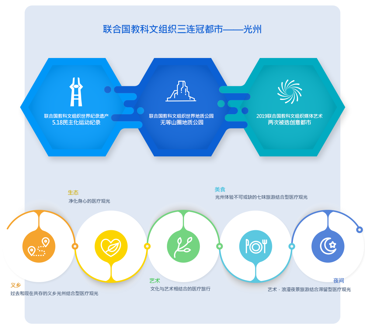 | 旅游商品 | 采用光州独有生态资源的都市型治愈商品 - 湖水生态园、无石路、元晓寺、芝山游乐园等为了克服新冠抑郁而开发的光州型治愈文化,连接村落的“徒步旅行” - 韩国观光公社评选零接触景点(月峰书院、荣山江极乐亲水公园) |